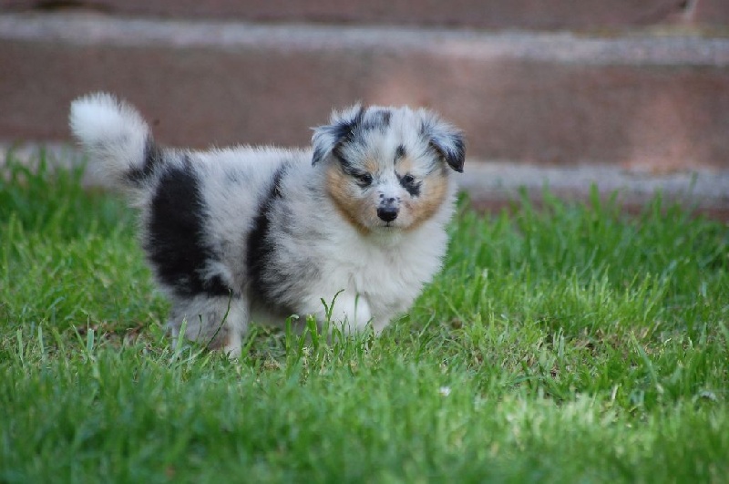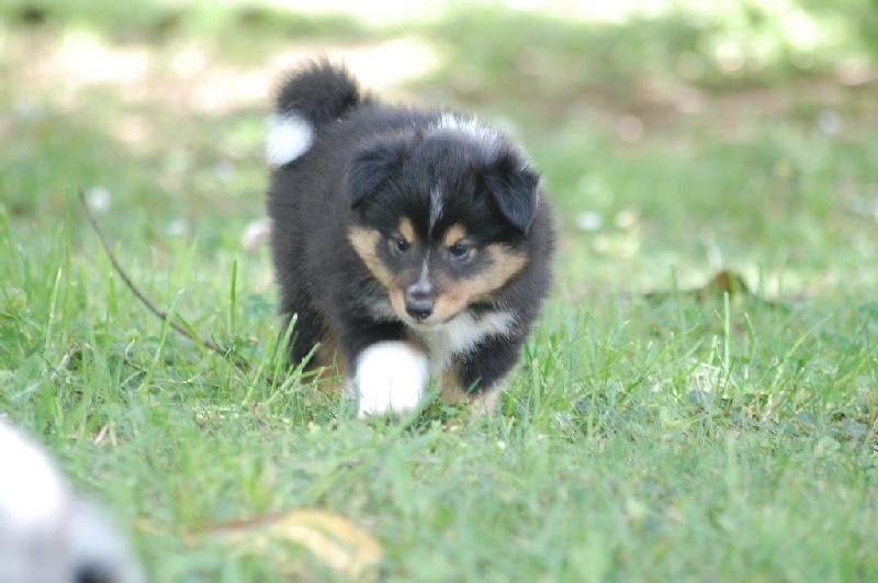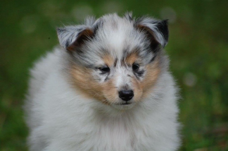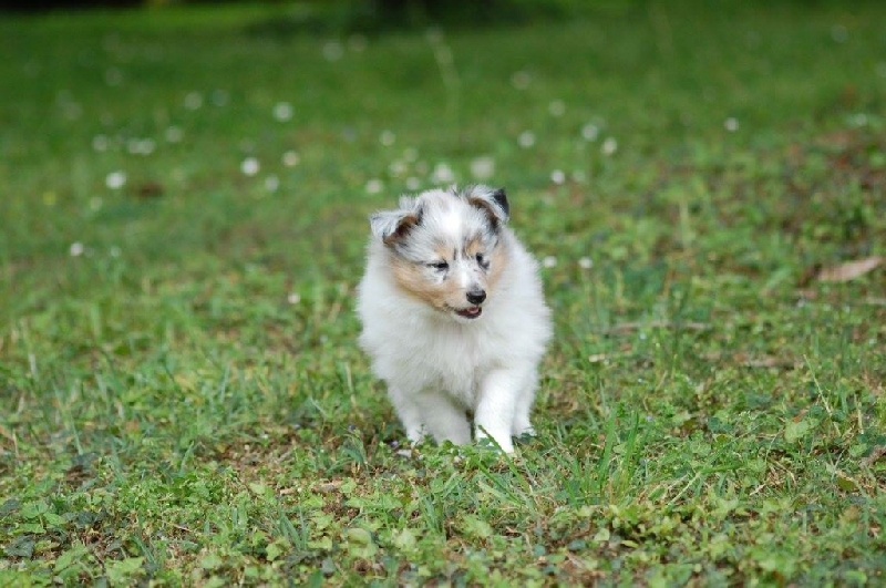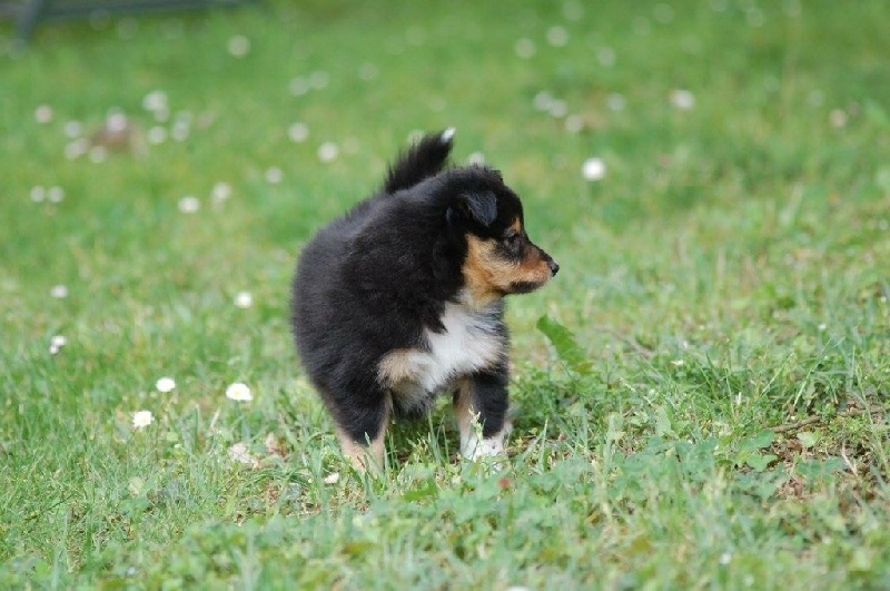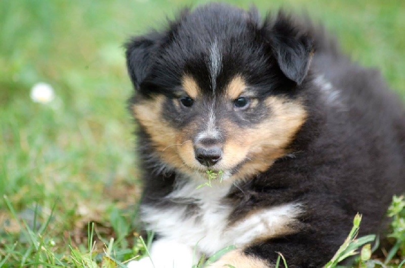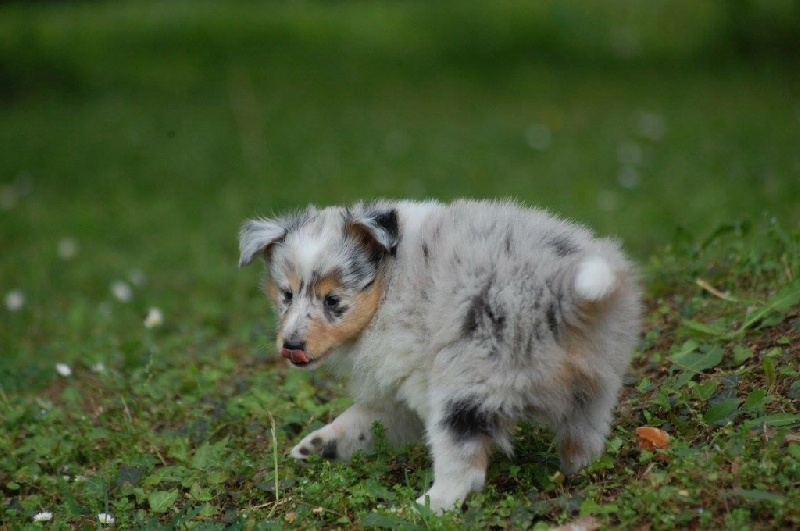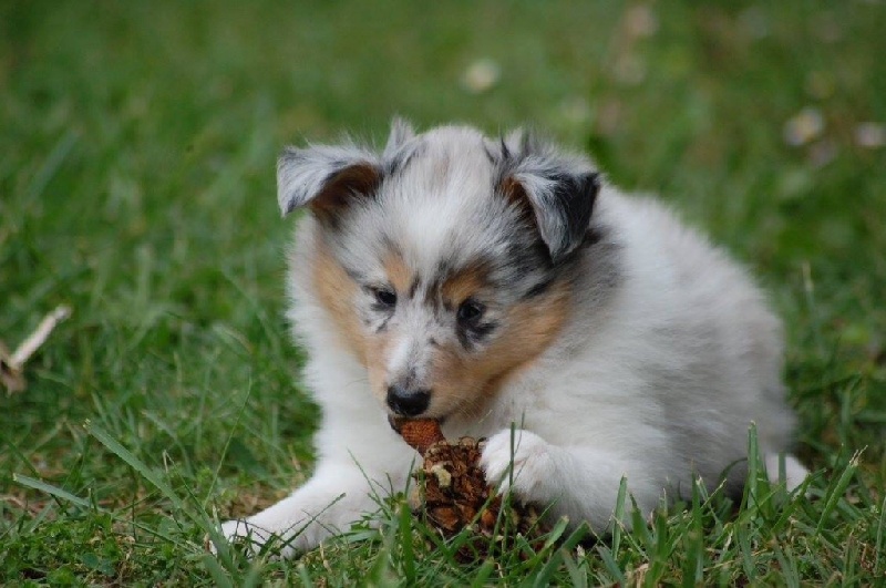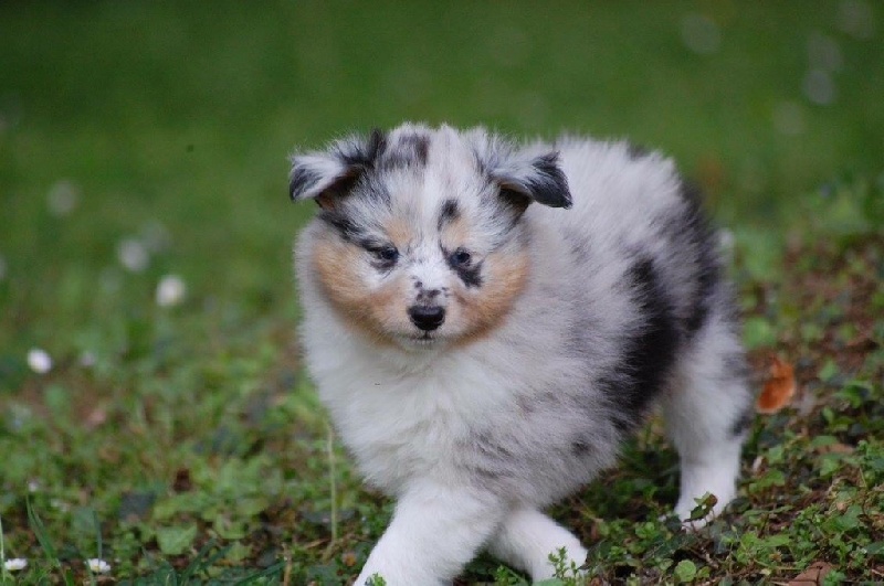 Mâle bleu né à 8h55 à 220gr, un très gros collier blanc ainsi qu'une belle liste blanche. Photos à 6 semaines. 4ème et dernier mâle arrivé, c'est un petit rigolo ! il communique beaucoup par le jeu, se fait entendre par le jeu, et règle tous les conflits par le jeu ! c'est un vrai petit pitre, quand on lui cherche les noises il le prend à la rigolade et l'affaire est dans la poche ! il sait être aussi un parfait petit chien trop trop trop câlins !